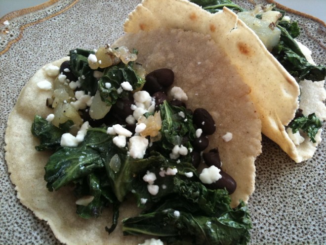 Assemble your tacos on your favorite tortillas, but give corn a try if you can find some. They toast up well in a dry skillet.