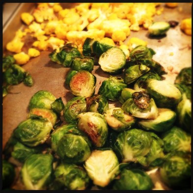 I roasted cauliflower AND brussel sprouts for dinner tonight and realized that we don’t usually have more than one color vegetable on our plate. We’ll have bright salads and stews with a full-on rainbow of phytonutrients, but those meals only happen two to three times a week.