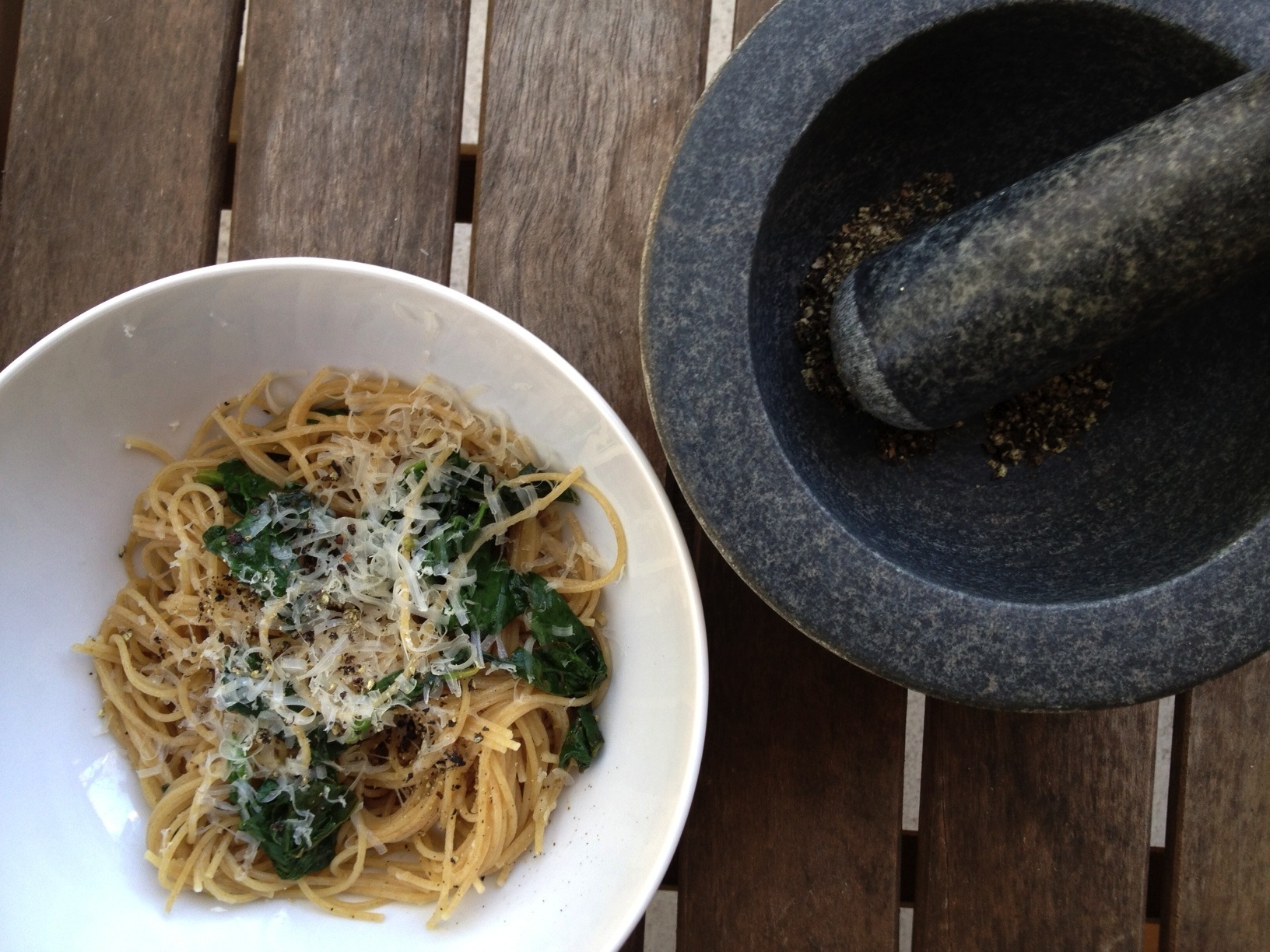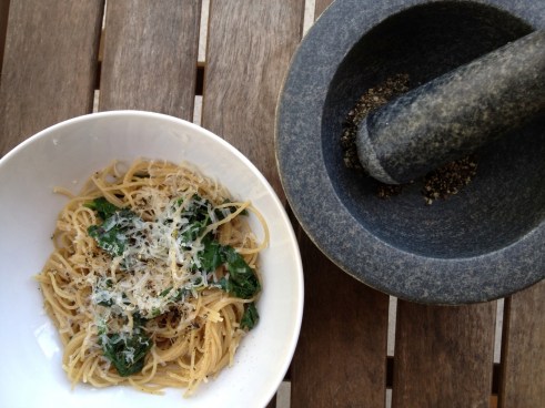 Added spinach to Spaghetti with Lemon & Olive Oil (our version pictured above)
