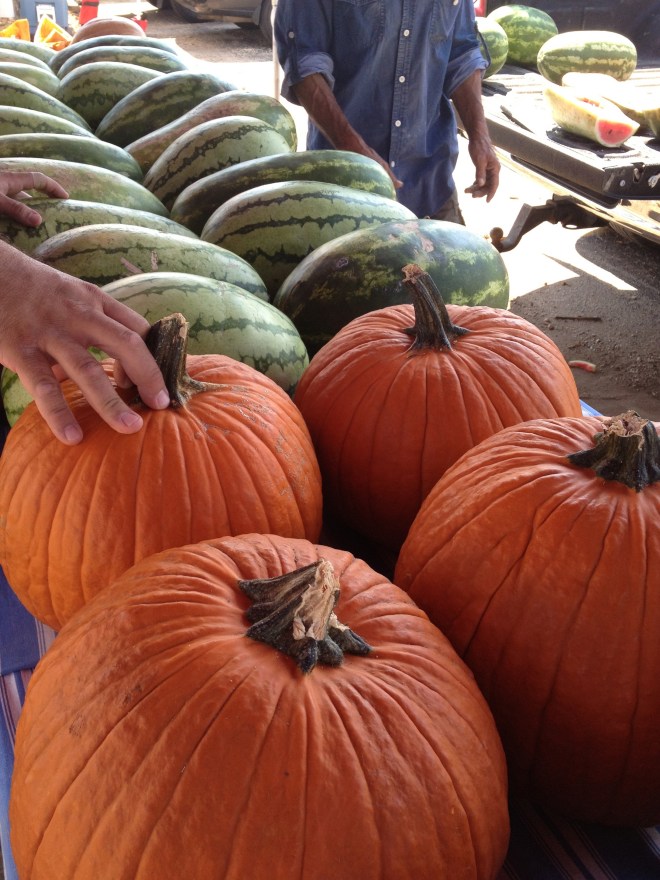 And it has arrived in a manner that oozes Tejas – with watermelons AND pumpkins side-by-side at the market. Still making our way through okra and zucchini and soooooo many peppers, but are starting to get glimpses of the upcoming season in our CSA box. Greens, people! We have bok choi and kale.