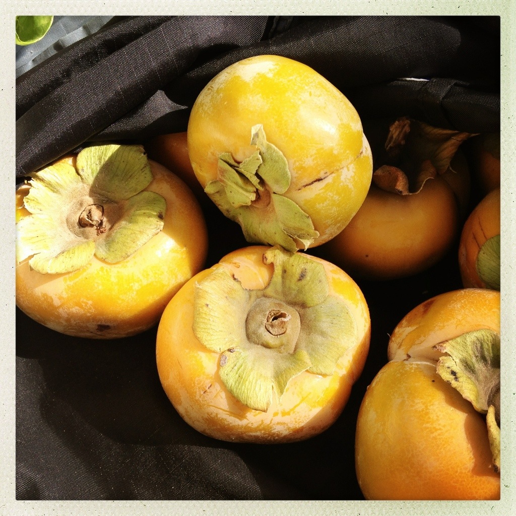 My CSA box was filled with greens and beets in spite of the heat. These beautiful persimmons are fetching a ride home, too.