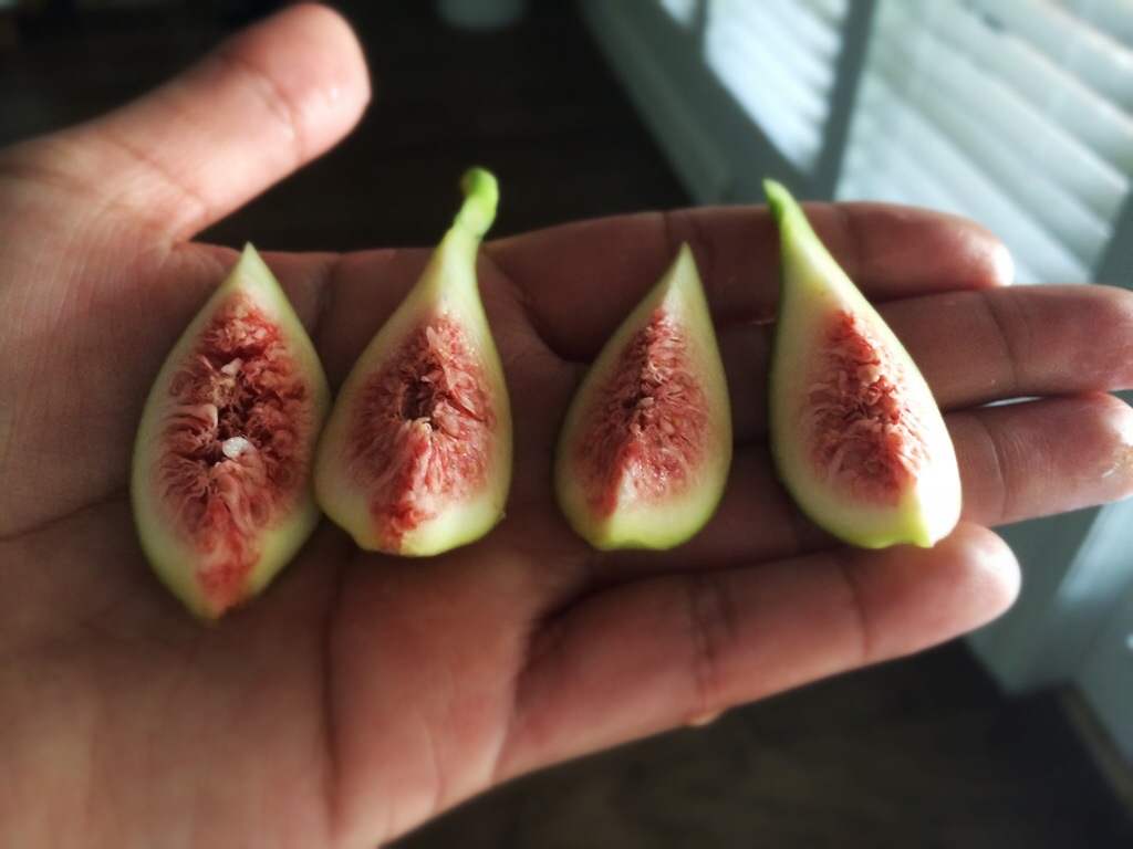 They still have a bit left to go before they are ready, but I couldn’t resist plucking one from the tree any longer. I’ll be battling the birds for the huge stash before long.