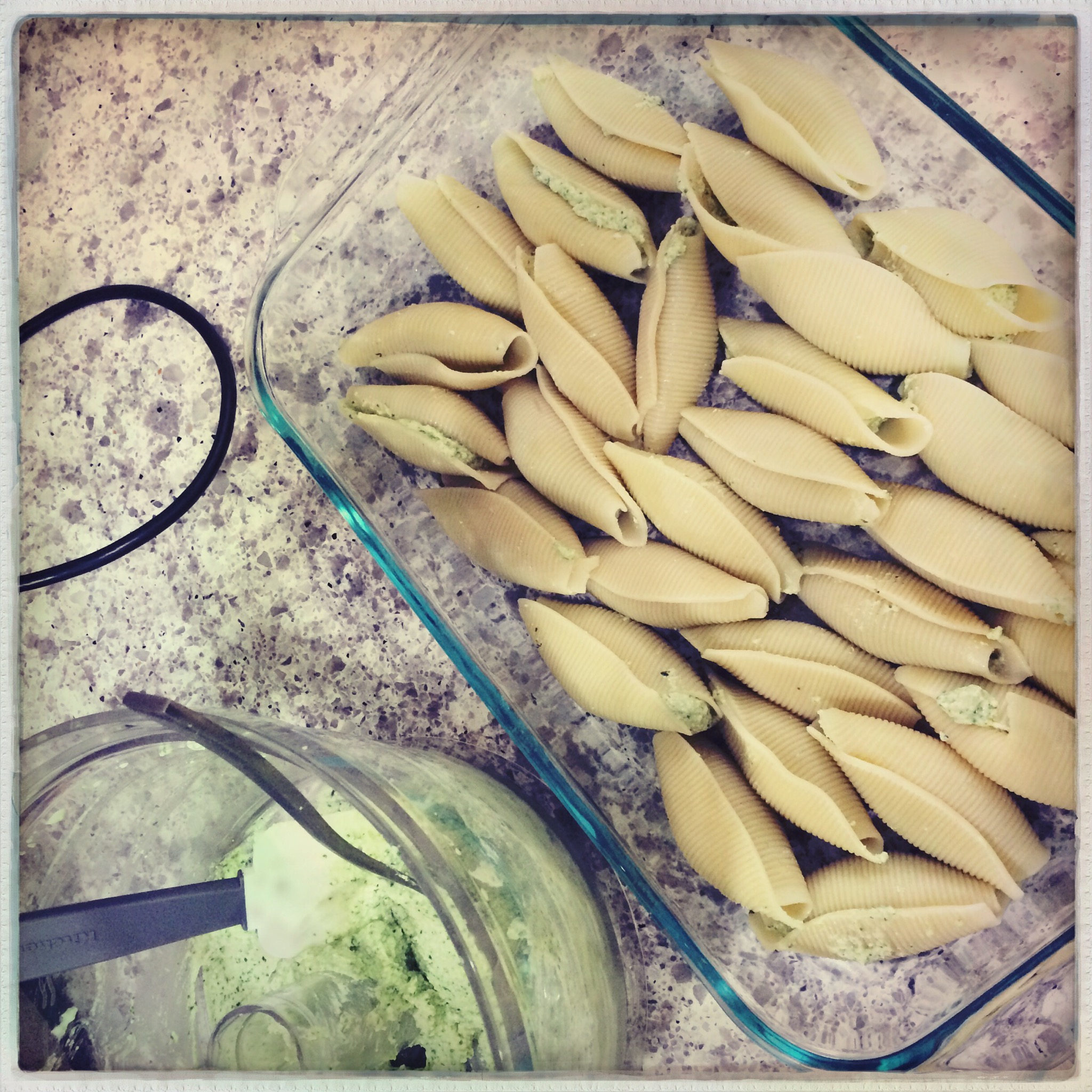 I have lots of ideas for meals, a full fridge, and some mental space to play in the kitchen so this is exactly what I am going to embrace this week. No meal plan. Today, I decided to stuff some pasta shells mid-day for a quick meal come dinner time. What are you eating tonight?