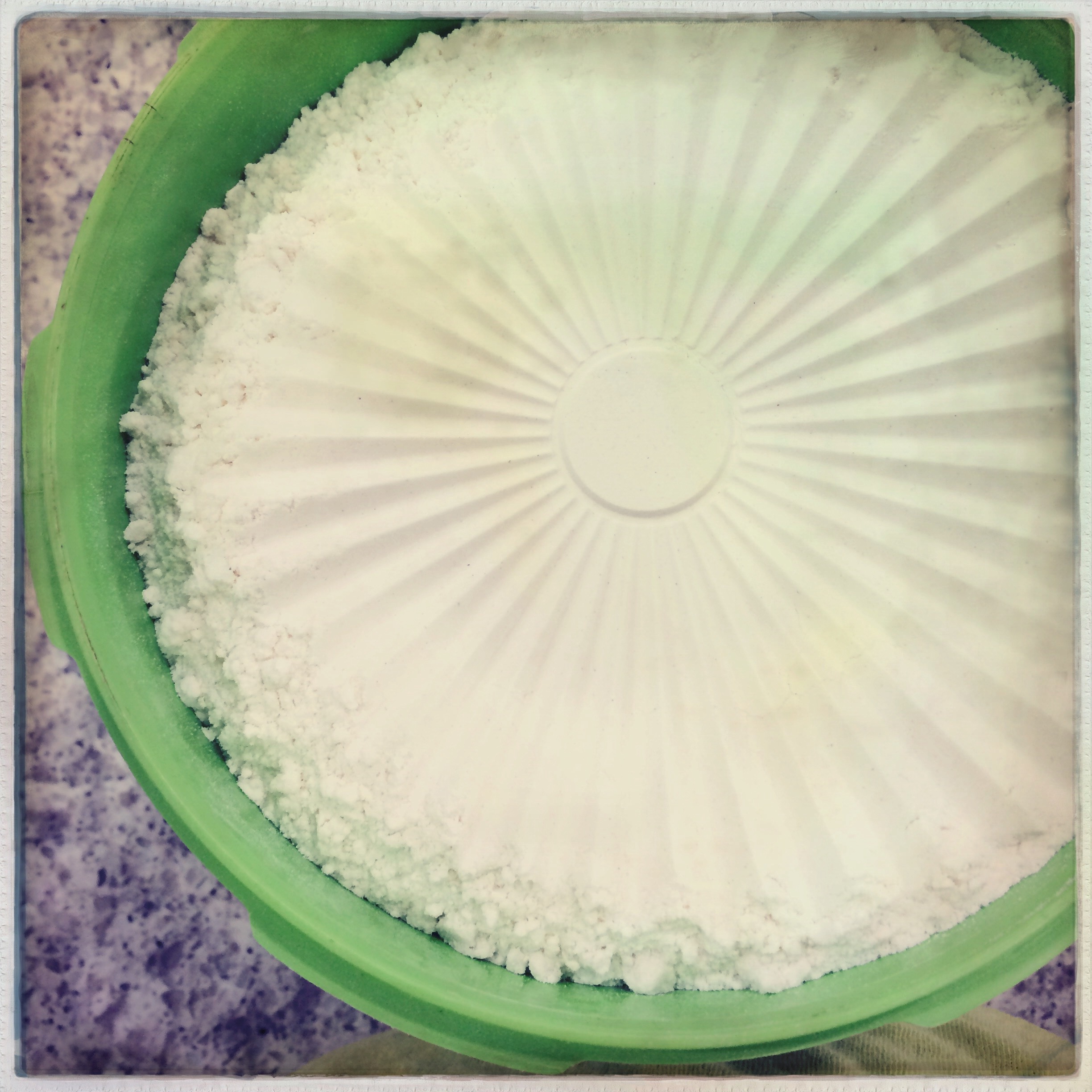 I inherited the entire set when she moved her kitchen to Merida a few years ago and they hold flours for baking. This lovely little pattern only happens when the container is filled to the brim (rarely). Do you have anything in your kitchen from your parents’ house? What does it remind you of?