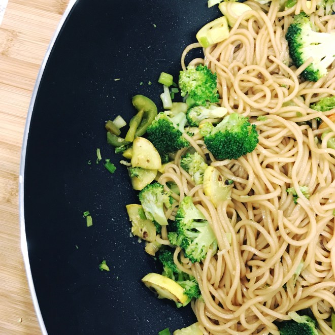 It has taken me darned near 20 years to figure out how to stir-fry a noodle without turning it to mush or goo. Took the help of an old favorite (Madhur Jaffrey’s World of the East Vegetarian Cooking) to break me of my well-cememted habits and to try what I have perhaps known all along – stir-frying noodles and veggies separately makes all the difference. We’ve have been enjoying LOTS of stir-fried noodles lately as I practice.