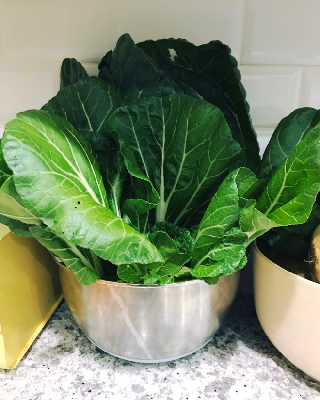 - Thicker-stalked greens (bok choi, kale, and collards) get treated like a bouquet of flowers in my kitchen. I cut off about an inch of the stems and place in 1-2 inches of water in a bowl (the leaves open up wide). It gives the counter a pop of edible greenery and keeps them at hand for easy additions to morning scrambles, smoothies, stir fries, bowls and soups. Switch out the water daily and move to the fridge once you’ve worked your way through your more delicate greens to extend their life even further.