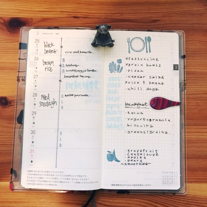So… April is all about getting my kitchen and cooking and grocery shopping back on track. Will spend the rest of this week and the upcoming weekend sorting the pantry and freezer and doing a little meal prep to get us started off on the right foot next week.