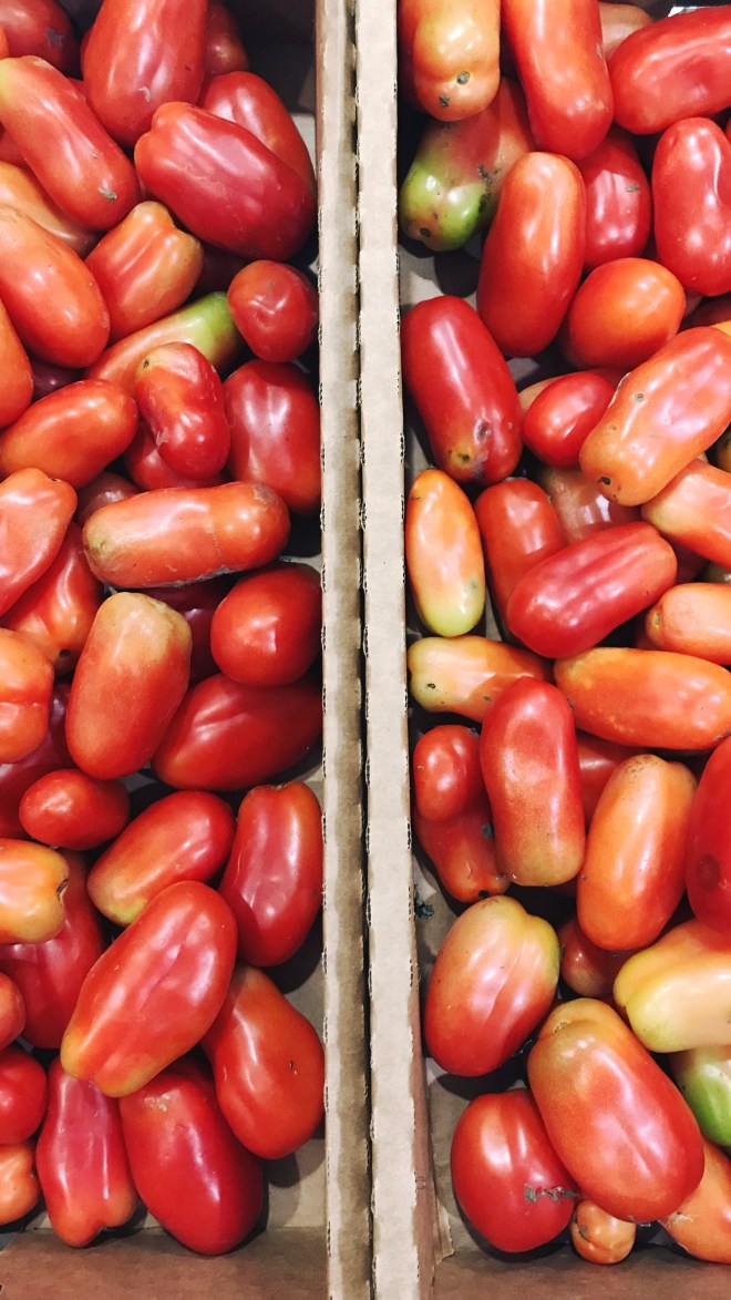 He was kind enough to pick up the first of my tomato haul this morning for me and I am now quickly assessing priorities. This first 20 lbs is all san marzanos and most are on the smaller side so I think most are getting cored and processed into a chunky tomato sauce that is a whole lot less trouble than blanching and peeling for crushed tomatoes.