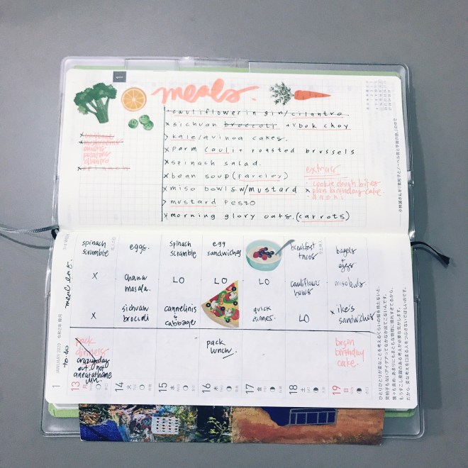 Feeling pretty great about how much I cooked this past week in spite of only swinging one home meal on Monday. Also trying to more clearly track where we eat leftovers (LO) so I can get a better sense of how long my cooked meals carry us over into the week.