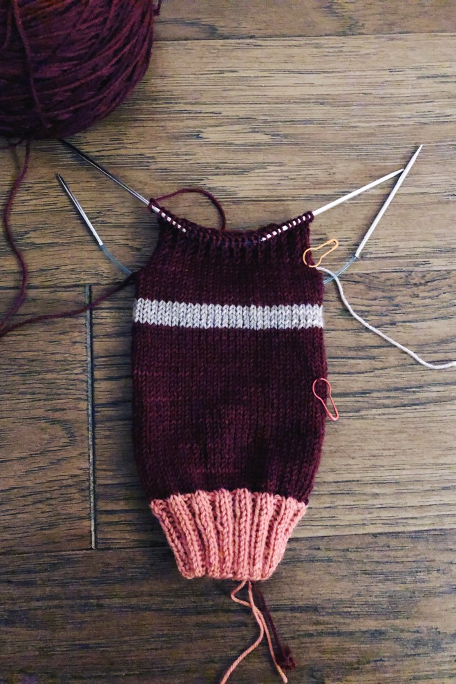 I’ll be stepping away from patterns for a bit to just play with colors and work through my yarn stash via a basic sock that I have committed to memory. My most pressing bit of technique polishing will be striping and getting a cleaner, jogless color switch down. After that I’ll probably play with some heel variations.