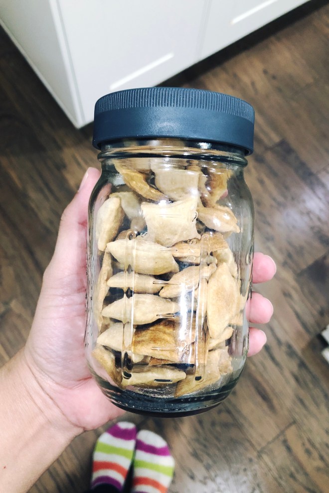 I have luckily gotten to a place of weekly feedings and this rhythm is aligning really well with the house’s Sunday morning waffles and weekday pizza nights, made with the 8 ounces of discard that I have to remove before my feeding. Crackers are the latest recipient of the sourdough upgrade. I made them in two batches, reserving one dough disk for a couple of days later. I suspect that it would hold up well in the freezer, but have not given that a try yet. Let me know if you do!
