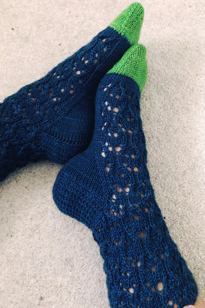 Memorializing the satisfaction that comes with finishing a pair that had been tabled for months. The pattern was way easier to get into a rhythm with than the first time around and once I got started, it only took me a few evenings. They are gorgeous and I can’t wait to block them to make the lace pattern pop!