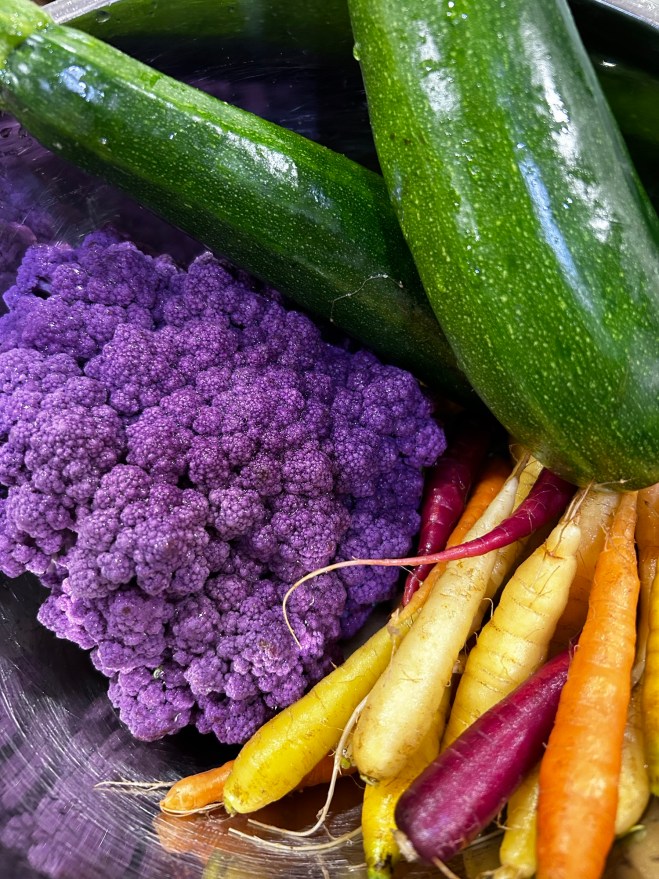 I know we are supposed to trust the age-old adage, but I don’t know that I have ever picked up a CSA box in April with zucchini in it. Does zucchini go with cauliflower? Does our seemingly endless season of summer squash start in April now?!? Gah. What on earth are we doing to this earth!