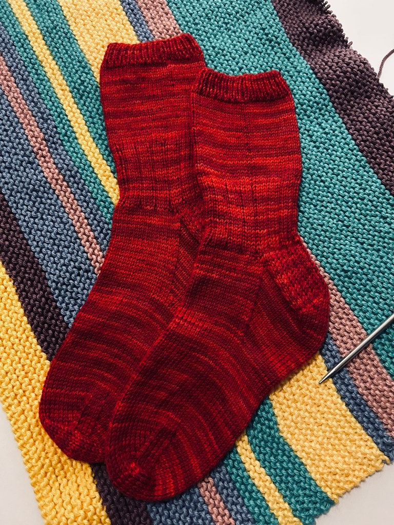 Sock #1-2025 is a cozy red pair that were originally intended as a gift but I am on the fence about gifting a red pair of socks to the kid in his first year of living on his own. I can visualize the pink load of laundry with the lone stray red sock as the culprit. But they are pretty darned soft and his favorite yarn.
